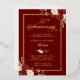 Invitación Con Relieve Metalizado Burgundy Rojo Floral 50 Aniversario de Boda Dorado