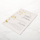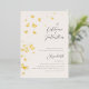 Una elegante invitación a la ducha de novias con un tema de mariposas y el título "A Lifetime of Butterflies", con remolinos y viñas con mariposas cubiertas de oro (Relieve metalizado real). Con su naturaleza delicada y caprichosa, estas mariposas doradas atraerán a la novia moderna a la que le gusta la estética femenina y romántica. Símbolos de transformación, nuevos comienzos y crecimiento, son un motivo perfecto para una ducha de novias, especialmente emparejada con el oro que significa elegancia y lujo. Un diseño visualmente agradable y hermoso que se alinea con el deseo de una novia de un evento sofisticado y elegante.