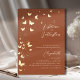 Una elegante invitación a la ducha de novias con un tema de mariposas y el título "A Lifetime of Butterflies", con remolinos y viñas con mariposas recubiertas de oro (Relieve metalizado real), sobre un fondo de terracota. Con su naturaleza delicada y caprichosa, estas mariposas doradas atraerán a la novia moderna a la que le gusta la estética femenina y romántica. Símbolos de transformación, nuevos comienzos y crecimiento, son un motivo perfecto para una ducha de novias, especialmente emparejada con el Relieve metalizado de oro que significa elegancia y lujo. Un diseño visualmente agradable y hermoso que se alinea con el deseo de una novia de un evento sofisticado y elegante.