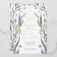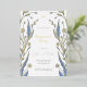 Invitación de la fiesta de compromiso con un marco de ramas elegantes con mariposa y hojas azules. Flores delicadas azules dibujadas a mano sobre fondo blanco. Fondo romántico de naturaleza floral. Resumen de las ramas naturales. Diseño floral de primavera o verano. Parcela botánica. Invitación de la fiesta de compromiso de botánica azul suave. Colección Blue Buttercup.