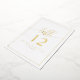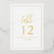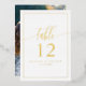 Número de tabla fotográfica de caligrafía blanca y Relieve metalizado dorado. Personalice este diseño personalizado con su propia foto.