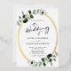 La caligrafía eucalipto blanco y salvia todo en una invitación Boda al Relieve metalizado dorado real... En la parte delantera de nuestra lujosa invitación a bodas botánicas se encuentra un auténtico marco oval de Relieve metalizado dorado adornado con hojas de eucalipto de color esmeralda sobre un crujiente fondo blanco. El sabio ligero de la invitación contiene todos los detalles que normalmente se verán en las tarjetas separadas del paquete boda. Esta moderna invitación a la boda fue diseñada para ser a la vez elegante y de bajo costo... por no hablar de ahorrar tiempo. Todo el texto de ejemplo (aparte de los elementos caligráficos gráficos) se puede revisar fácilmente con su propia información sobre la plantilla de personalización.