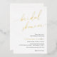 Esta sencilla invitación a la ducha de novia cuenta con un moderno guión de caligrafía. Personaliza con tus detalles del evento de la ducha de novia para celebrar a la novia.
