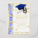 Invitación a graduación de Relieve metalizado, tema de Cap & Diploma con estrellas de Relieve metalizado, con obras de arte de "Año", en tintas y Relieve metalizado dorado azul y blanco. La parte de atrás de la invitación incluye el nombre del graduado, puede ser personalizado con sus propias imágenes, obras de arte, etc. Un auténtico Relieve metalizado italiano.