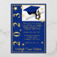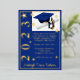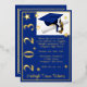 Invitación Con Relieve Metalizado Cápsula, Diploma y Estrellas, Graduación Real Azul