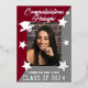 Invitación a graduación de Relieve metalizado, con foto de grado, y genuino texto de Relieve metalizado italiano, obras de arte de cap & diploma, y estrellas en la parte delantera. Al revés aparece la invitación a la fiesta de graduación. Puede personalizar la invitación en Zazzle, o enviar un mensaje MineByDesign para obtener ayuda o pedidos de personalizados.