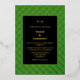 Pídele a amigos y familiares que se unan a las celebraciones del día de la boda con esta moderna invitación a la boda. El diseño del Relieve metalizado Carnaby Confetti presenta un crudo patrón de confeti dorado en un borde verde, y un elegante texto dorado en un fondo negro, dando una impresión glamurosa y audaz de tu ocasión especial. Disfruta de un verde brillante y negro o cambia los colores de fondo para personalizar de tu papelería boda.