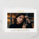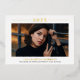 Celebre a su graduado con una invitación de papel foil moderna que presenta una foto favorita y elegantes acentos de papel dorado con el año y el nombre. La tipografía limpia y el diseño blanco brillante mantienen el enfoque en el graduado. El reverso incluye un diseño coordinado para los detalles de la fiesta, hora, ubicación y RSVP. Perfecto para una casa abierta de graduación o fiesta de graduación.