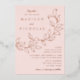 Invitaciones botánicas de boda con sus nombres y detalles bodas en letras de Relieve metalizado de oro subió divididas por una vid de hojas esbozadas con un fondo rosa claro y lustre. Las elegantes invitaciones a bodas de Relieve metalizado dorado se coordinan con nuestra colección de bodas de las hojas de cascadas.