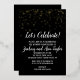 Invitación Con Relieve Metalizado Celebremos Confetti en oro del aniversario negro