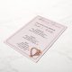 Se trata de una invitación a una cena de 5' x 7", mostrada en rosa pálido, con acentos de Relieve metalizado de oro rosa. Este es un recorte de Relieve metalizado real, disponible en oro, plata y oro rosa. Entre los acentos de Relieve metalizado se incluyen la pancarta del ensayo, el nombre de la novia y del novio, un corazón caprichoso, un diseño de corazón y rosas, y un contorno de Relieve metalizado en la parte delantera. al revés, el nombre de la novia y del novio y las cardíacas.