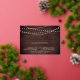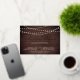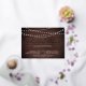 Nuestras elegantes y rústicas invitaciones para cenas o cócteles incluyen un fondo de madera oscura con cuerdas de luces blancas en la parte superior y una "cena de ensayo" en la tipografía de escritura de caligrafía de Relieve metalizado de oro de moda. Personalice con sus detalles de ensayo de ceremonia y de cena de ensayo debajo. Incluye espacio para el momento del ensayo y dirección de la iglesia o el lugar.