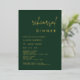 Invitación Con Relieve Metalizado Cena de Ensayo Verde Esmeralda con Hojas de Oro