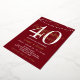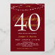 Cena con el 40º aniversario de un boda rojo profundo con detalles de Relieve metalizado blanco y dorado. Invitación a cenar sin foto con luces de cuerda, con los años en los que te has casado con una fuente blanca y tus nombres con Relieve metalizado dorado en un fondo rojo profundo. Elegante 40º aniversario boda invitación a cenar personalizada con sus nombres en Relieve metalizado dorado con un fondo rojo oscuro.