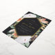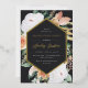 La elegante invitación floral a la fiesta de graduación presenta un marco hexagonal alargado con un impresionante Relieve metalizado dorado, rodeado de flores acuáticas y follaje en tonos boho desérticos de melocotón, blanco, marfil y verde salvia sobre un fondo negro de ceniza. Personalice los detalles de su fiesta de grado con letras clásicas de la serie y guiones con acentos de Relieve metalizado.