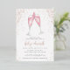 Las invitaciones al brunch festivo y elegante a la ducha de novia incluyen un par de copas de champán en color agua, llenas de burbujas rosas. Personaliza con tus detalles de brunch de novia con letras grises de moda. El diseño se completa con el guarnecido y las letras del Relieve metalizado de oro Rosa.