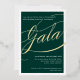 Invitación Con Relieve Metalizado CHARITY GALA elegante caligrafía oro verde oscuro