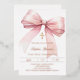 Un fondo blanco, decorado con una gran proa rosa y una cruz dorada. Personalice y agregue un nombre y detalles. Rosa de texto de Relieve metalizado de oro.