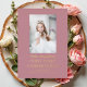 Invitación Con Relieve Metalizado Chica Script Photo First Holy Communia Rosa Gold