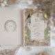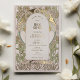 Invitaciones de boda vintage de Art Nouveau florales verdes y dorados de Alphonse Mucha en un diseño romántico y caprichoso que utiliza auténtico foil dorado. Los florituras victorianas complementan las fuentes clásicas del art déco. Por favor, ingrese su información personalizada y listo. Si desea cambiar aún más el diseño, simplemente haga clic en el botón azul "Personalizar". Muchas gracias por considerar mi diseño para su boda.