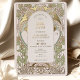 Invitación Con Relieve Metalizado Chimenea de novia Bougainvillea Verde Dorado Art N