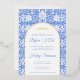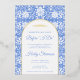 Invitación Con Relieve Metalizado Chinoiserie Floral Algo Blue Bridal Shower