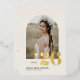 Celebra tu graduación con esta invitación para graduación de fotos de personalizable con un fotograma de arco. Esta invitación a graduarse es perfecta para los graduados de otoño, ya sea para graduaciones de secundaria o universitarias. Elija entre una variedad de opciones de color y cartones para que coincidan con su tema de graduación. Esta invitación a graduarse en Relieve metalizado de oro es la manera perfecta de compartir su momento histórico con amigos y familiares. Ya sea que lo envíes para una graduación de secundaria, una graduación universitaria u otro logro académico, este diseño personalizado marcará el tono para una celebración memorable.