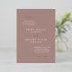 Elegante invitación a la boda con un sencillo y mínimo diseño tipográfico. Las palabras de acento están en una tipografía de escritura, impresas en Relieve metalizado real y la disposición se desplaza para un toque moderno. La plantilla muestra el texto de la parte posterior de una invitación completa, o puede eliminar el texto para dejar el texto en blanco. El color de fondo es oscuro y puede cambiar el color de fondo o cambiar todo el texto de la parte frontal al Relieve metalizado de la herramienta de edición de diseño. Este diseño es genial, ya sea que tengas un boda formal o informal.