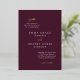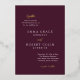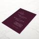 Elegante invitación a la boda con un sencillo y mínimo diseño tipográfico. Las palabras de acento están en una tipografía de escritura, impresas en Relieve metalizado real y la disposición se desplaza para un toque moderno. La plantilla muestra el texto de la parte posterior de una invitación completa, o puede eliminar el texto para dejar el texto en blanco. El color de fondo es vino de mora y puede cambiar el color de fondo o cambiar todo el texto del frente al Relieve metalizado en la herramienta de edición de diseño. Este diseño es genial, ya sea que tengas un boda formal o informal.