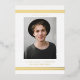 Invite a los huéspedes a su evento con esta invitación para una fiesta de graduación con Relieve metalizado dorado de personalizable. Presenta bandas dobles clásicas y una tipografía simple. Personalice agregando sus fotos, nombres, nombres de escuela y otros detalles. Esta invitación para graduarse en Relieve metalizado de oro es perfecta para graduaciones de secundaria y universitarias.