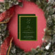 Profundo bosque verde eterno y elegante invitación a la boda en hoja de monograma con Relieve metalizado real borde dorado y guión de Relieve metalizado.