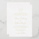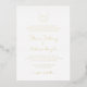 Invitación tradicional y clásica a una boda de Relieve metalizado de oro con un escudo boda con su monograma dentro de una corona junto con sus nombres en un guión / caligrafía. Todos los elementos de diseño del frente están en Relieve metalizado oro real. Esta invitación, sencilla pero elegante, es ideal para un boda formal.