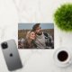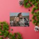 Tarjeta fotográfica clásica de vacaciones con tus "Felices Fiestas" mostrada en elegantes letras de Relieve metalizado dorado. Personalice la tarjeta de vacaciones de Relieve metalizado dorado añadiendo su foto, nombre y año de paisaje favorito. La moderna tarjeta fotográfica de vacaciones se revierte para mostrar un patrón de follaje verde con bayas rojas.
