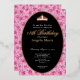 This elegant pink and rose gold foil black floral 18th birthday debut invitation has roses, a rose gold tiara crown, and a rose gold foil oval with a personalizable template to create your own message. The invitation template is customizable in the listing editor and is also available as a digital download that's printable after you personalize it. This is a luxurious design that will set the tone for an elegant debut party.