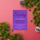 Moderno, código QR, Relieve metalizado morado y dorado, elegantes invitaciones de cumpleaños número 60. Puedes personalizarlo con tus propios detalles.