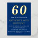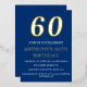 Moderno, QR Code, azul marino y Relieve metalizado dorado, elegantes invitaciones de cumpleaños número 60. Puedes personalizarlo con tus propios detalles.
