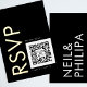 Invitación Con Relieve Metalizado CÓDIGO QR ultra moderno 2 x RSVP GOLD