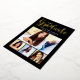 Celebre a su graduado de 2026 con estilo con esta invitación moderna de papel foil que presenta una escritura “Graduado” con papel foil dorado real sobre un fondo negro clásico. La parte delantera muestra un colaje de fotos audaz para retratos de último año, además del año y el nombre. La tipografía limpia y de alto contraste hace que los detalles sean fáciles de leer. La parte trasera se coordina en tipo negro crujiente sobre blanco con el diseño de información de la fiesta “Vamos a Celebrar”.