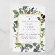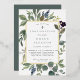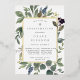 La invitación a la confirmación botánica de moda incluye un borde de hojas botánicas verdes de salvia exuberante y follaje eucalipto de acuarela con guarnecido de Relieve metalizado dorado. Personalice con su ceremonia y detalles fiestas en letras modernas sobre un fondo de marfil blanco y suave.