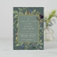 La invitación a la confirmación botánica de moda incluye un borde de hojas botánicas verdes de salvia exuberante y follaje eucalipto de acuarela con guarnecido de Relieve metalizado dorado. Personaliza con tu ceremonia y detalles fiestas con letras modernas en un tono de fondo verde musgo.