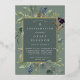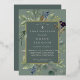La invitación a la confirmación botánica de moda incluye un borde de hojas botánicas verdes de salvia exuberante y follaje eucalipto de acuarela con guarnecido de Relieve metalizado dorado. Personaliza con tu ceremonia y detalles fiestas con letras modernas en un tono de fondo verde musgo.