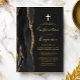 El borde izquierdo de esta elegante y moderna invitación a la Confirmación incluye un borde de batida de color negro adornado con un falso purpurina de oro. Una cruz de Relieve metalizado dorado aparece encima del texto del personalizable, que combina la escritura de mano de Relieve metalizado dorado real, las fuentes de copperplate y cursiva sobre un fondo negro de pizarra. El reverso presenta un diseño de agate negro y oro a juego.