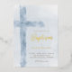 Invitación Con Relieve Metalizado cruz azul acuarela Bautismo