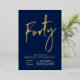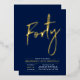 Celebra tu día especial con esta elegante invitación de cumpleaños número 40 con lámina de aluminio. Este diseño presenta un texto de lámina de aluminio dorado chic "Cuarenta" sobre un fondo azul marino. Puedes elegir el color de estampado de lámina real (Oro, Plata, Rosa oro). Hay más diseños y suministros para fiestas disponibles en mi tienda BaraBomDesign.
