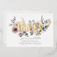 Flores acuáticas modernas y hojas de boho con la palabra 'cuarenta' en Relieve metalizado de oro real. ¡Perfecto para tu fiesta de cumpleaños!