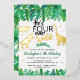 Invitación Con Relieve Metalizado Cuatro niños de dinosaurios salvajes 4 cumpleaños