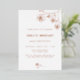 Una invitación de cumpleaños moderna, elegante y minimalista. Parte frontal: un fondo blanco decorado con flores en rosa oro. Personaliza y añade tu nombre y los detalles de la fiesta. Texto y flores con lámina de rosa oro real. Parte trasera: fondo con apariencia de plata falsa.