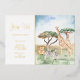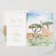 Agrega un adorable tema safari personalizado a la fiesta de tu pequeña o pequeño con esta bonita invitación de cumpleaños de animales africanos en acuarela. La invitación tiene mamá y bebé jirafas, cebras y leones en un fondo de sabana africana. También hay un lugar para texto personalizado.