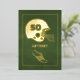 Invitación Con Relieve Metalizado Cumpleaños de fútbol americano dorado y verde
