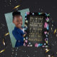 Invitación Con Relieve Metalizado Cumpleaños infantil con doodles espaciales de neón